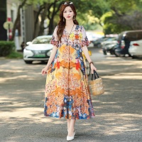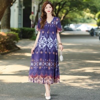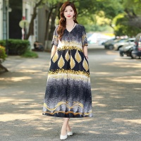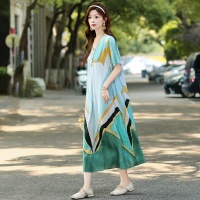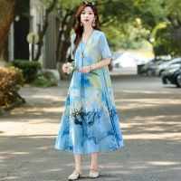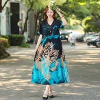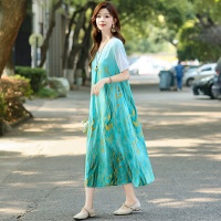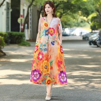 2025新款民族風棉綢連衣裙 輕奢高級感碎花長裙 洋氣百搭顯氣質 時髦減齡 印花設計 多色可選