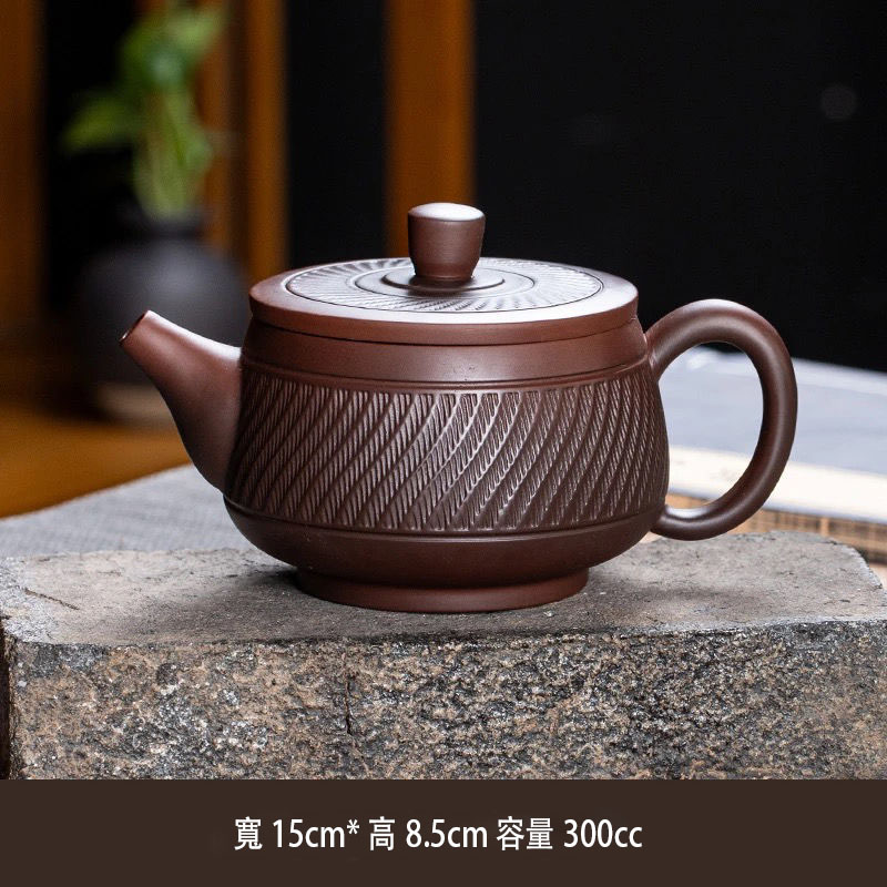 經典傳承・匠心打造|【大師純手工紫陶鳳鳴壺】復古跳刀紋漢瓦壺(一壺兩杯)・黃金大容量300cc + 球孔過濾,鳴音設計顯格調