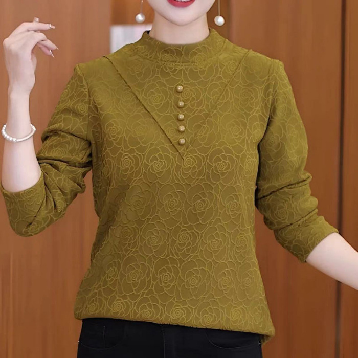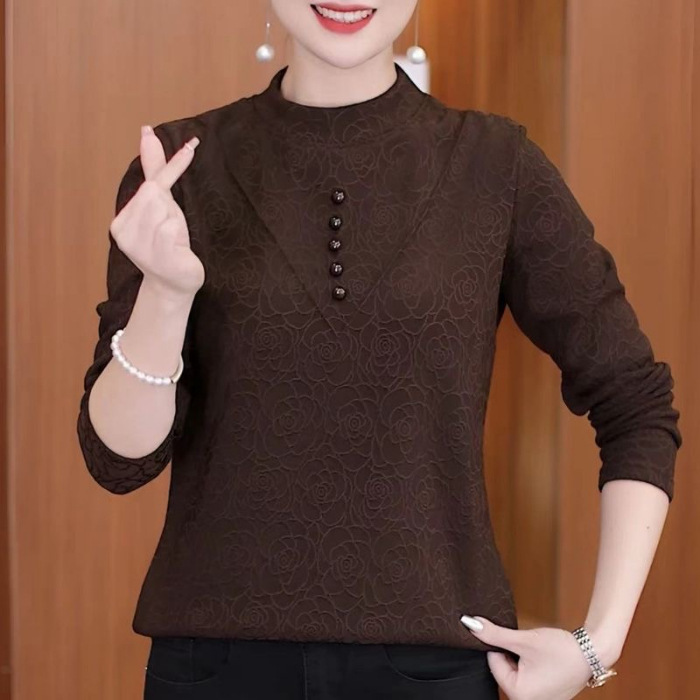 柔軟親膚材質單穿不刺癢 復古印花搭配半高領設計 下擺特殊處理防捲邊 陪伴你舒適度過每個換季時分