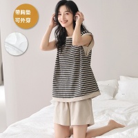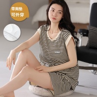純棉居家睡衣套裝,買一套送一套,自帶胸墊,居家外出都很漂亮,一點都不會尷尬